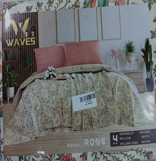 - طقم 4 قطع: كوفيرته 240*260 + 2 كيس خدادية 50*70 سم + كيس مخدة 160*45 سم